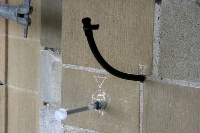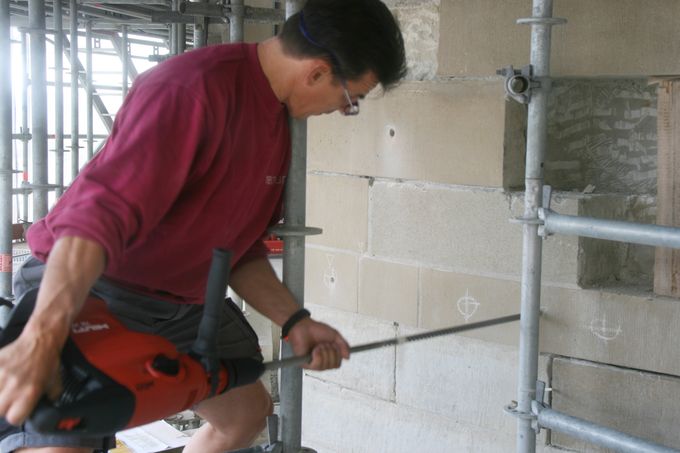 Intensives Reinigen der Bohrlöcher vor dem Einkleben der Nadelanker