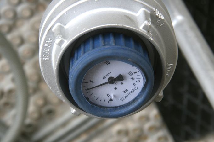 Druckaufbau bis 4 bar mit der Handpumpe